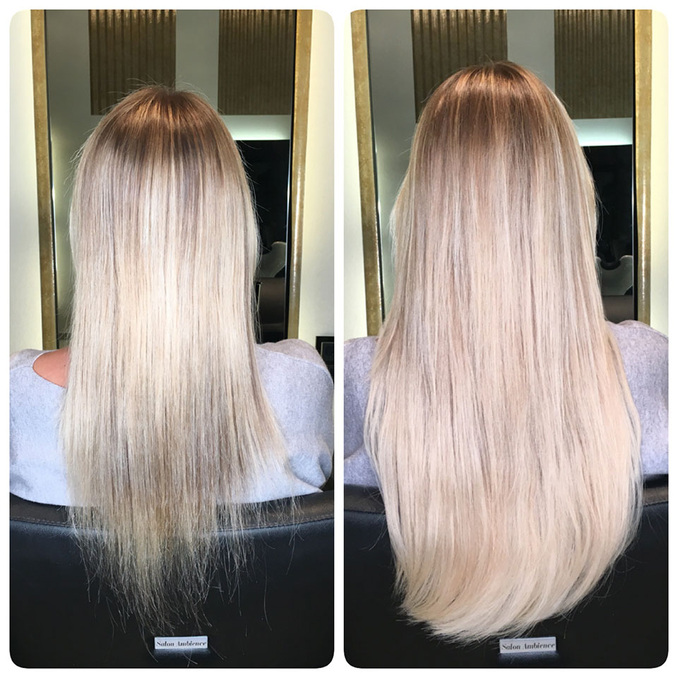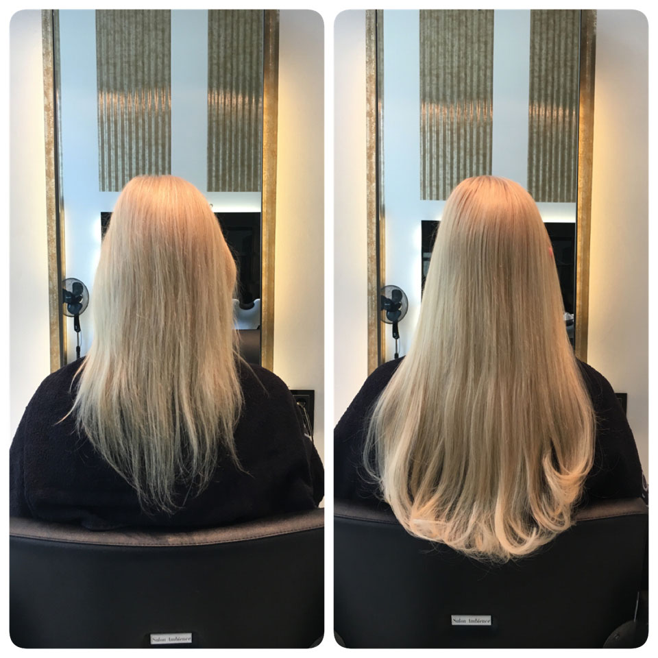 Wir arbeiten mit den Echthaar-Tape-Extensions von Hairtalk. Die Kaltklebemethode ist besonders haarschonend und schließt somit die Gefahr des Haarbruches aus. Ihre Haare lassen sich in 25, 40 oder 55 cm verdichten und auch verlängern. Durch das breite Spektrum an Farbnuancen fügen sich die Tapes nahtlos in das Naturhaar ein.